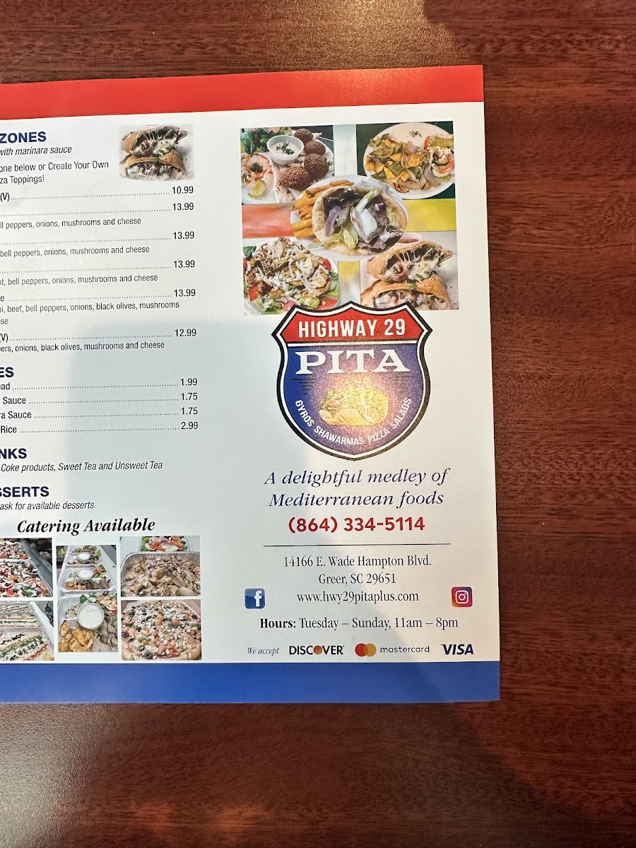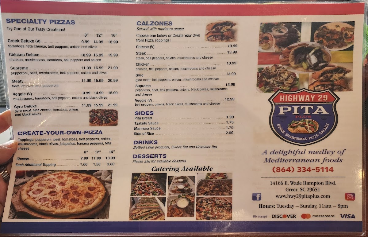 Overall, Hwy 29 Pita Plus offers a wide range of delicious and filling dishes, from pizzas to wraps, calzones, and fresh salads, all prepared with quality ingredients. Whether you're a fan of Mediterranean flavors or just looking for a hearty meal, this restaurant has something for everyone.
